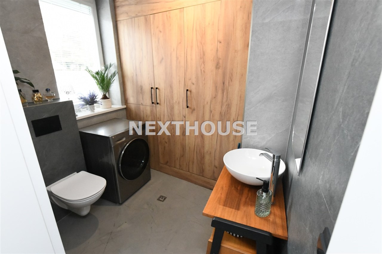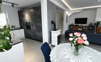 Budynek zbudowany z pustaka ceramicznego "Porotherm", doskonale izolowany styropianem, z trzyszybowymi oknami,dachówką ceramiczną zapewnia znakomitą efektywność termiczną. Ogrzewanie podłogowe oraz kocioł dwu-funkcyjny z zasobnikiem marki Brotje dbają o ciepło w domu. Obiekt wyposażony jest także w system alarmowy, monitoring, rolety w oknach oraz stację zmiękczającą wodę. Automatyczne nawadnianie na dużej, 647 m² działce dodaje uroku zielonej przestrzeni.