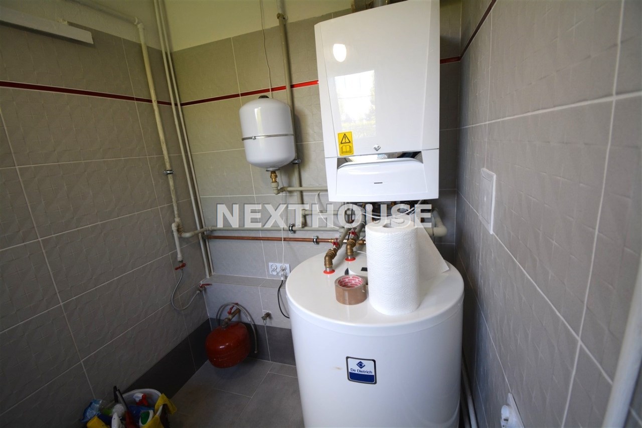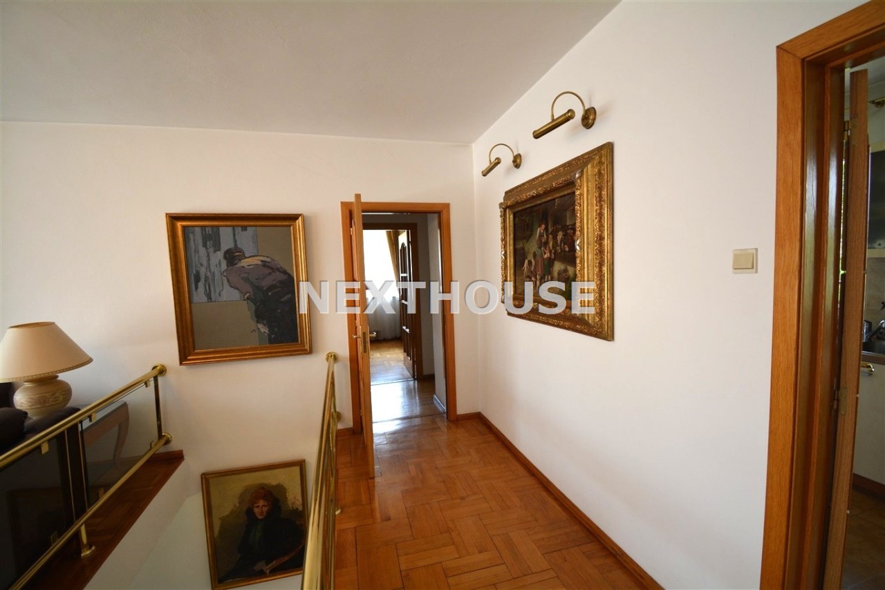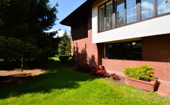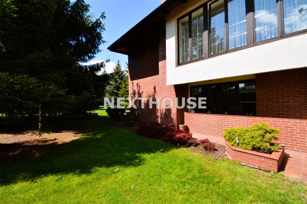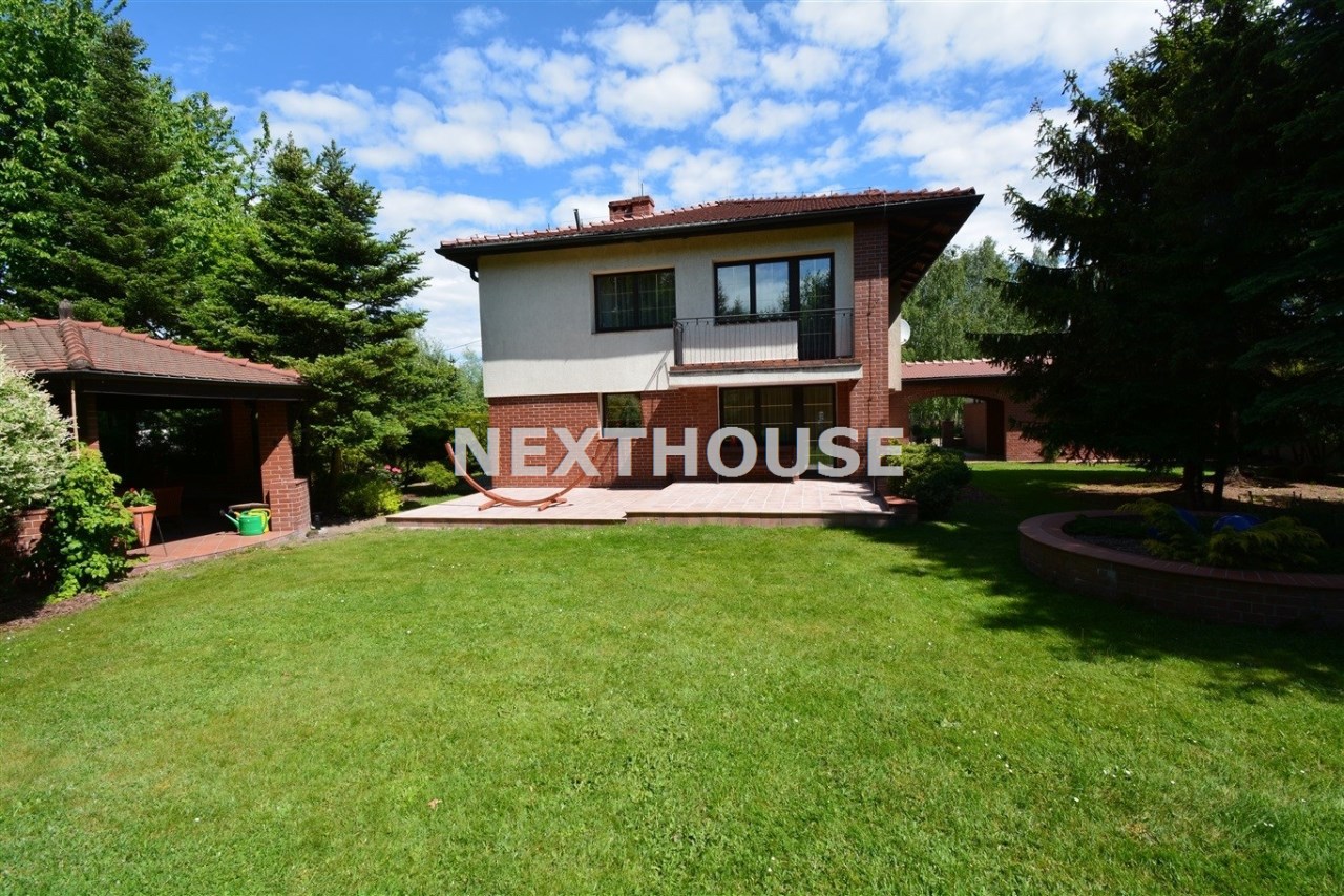 Na parterze znajduje się salon z kominkiem i wyjściem na taras prowadzący do ogrodu, gabinet, łazienka, pralnia, kotłownia oraz pomieszczenie gospodarcze. Duży hall dodaje klasy i przestronności. Piętro to otwarty salon z jadalnią, sypialnia z balkonem, garderoba, kuchnia oraz dodatkowy pokój. Przed domem znajduje się murowany garaż ,który pomieści nawet trzy auta – idealne rozwiązanie dla większej rodziny lub potrzeb firmy.