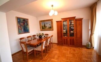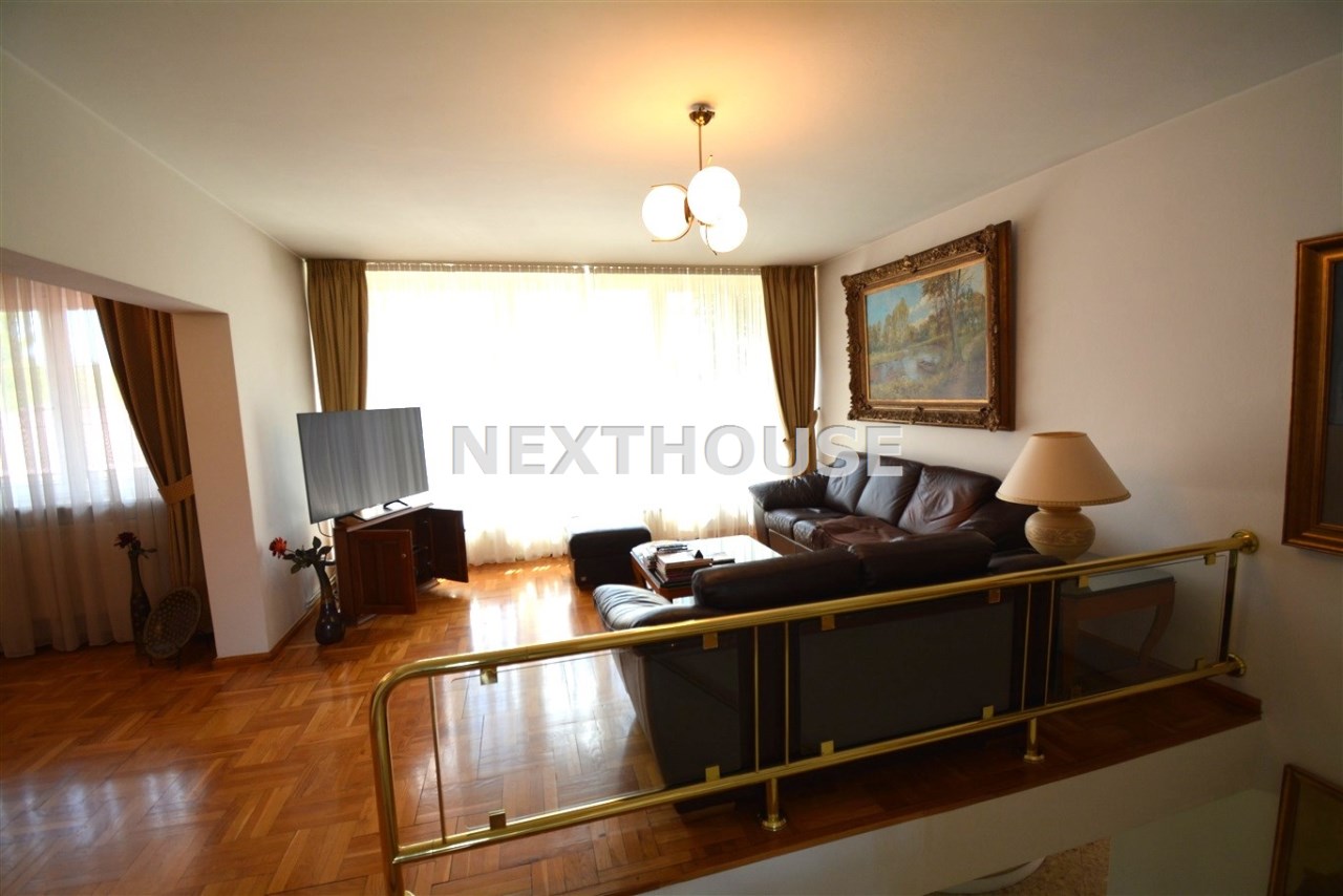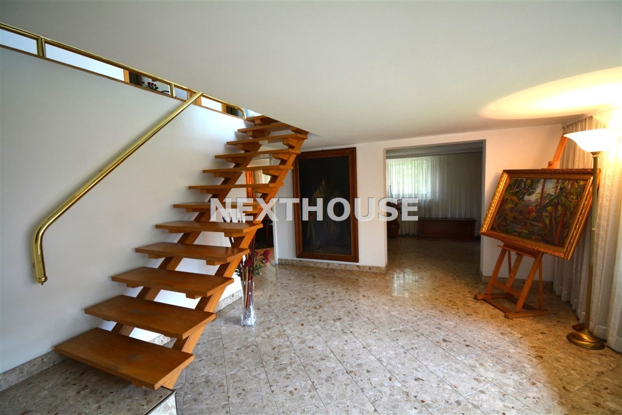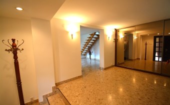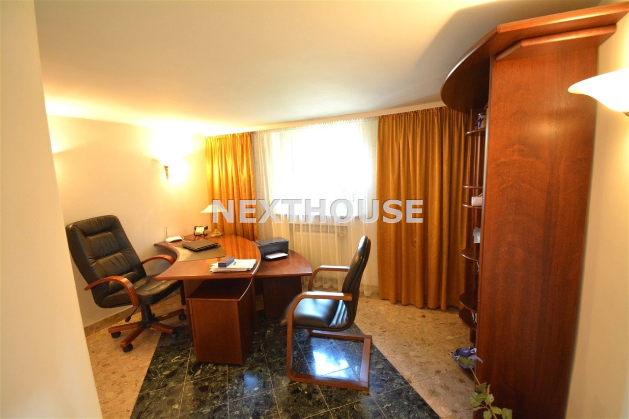 Na parterze znajduje się salon z kominkiem i wyjściem na taras prowadzący do ogrodu, gabinet, łazienka, pralnia, kotłownia oraz pomieszczenie gospodarcze. Duży hall dodaje klasy i przestronności. Piętro to otwarty salon z jadalnią, sypialnia z balkonem, garderoba, kuchnia oraz dodatkowy pokój. Przed domem znajduje się murowany garaż ,który pomieści nawet trzy auta – idealne rozwiązanie dla większej rodziny lub potrzeb firmy.