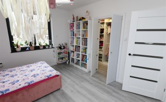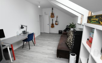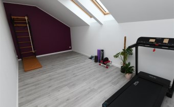 Piętro oferuje trzy komfortowe sypialnie, z czego dwie wyposażone są w praktyczne garderoby. Znajdziesz tu również przestronne,funkcjonalne biuro, siłownię, pralnię oraz wygodną i funkcjonalną dużą łazienkę, dzięki czemu każdy członek rodziny znajdzie swoją przestrzeń. Dodatkowe miejsce do przechowywania oferuje zaś poddasze,idealna przestrzeń na ubrania sezonowe i inne drobiazgi.