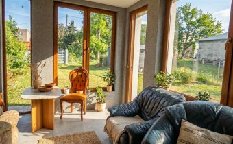 Dom w części głównej składa się z 5 pokoi, kuchni, łazienki, dwóch tarasów zewnętrznych oraz dwóch przeszklonych ogrodów zimowych.