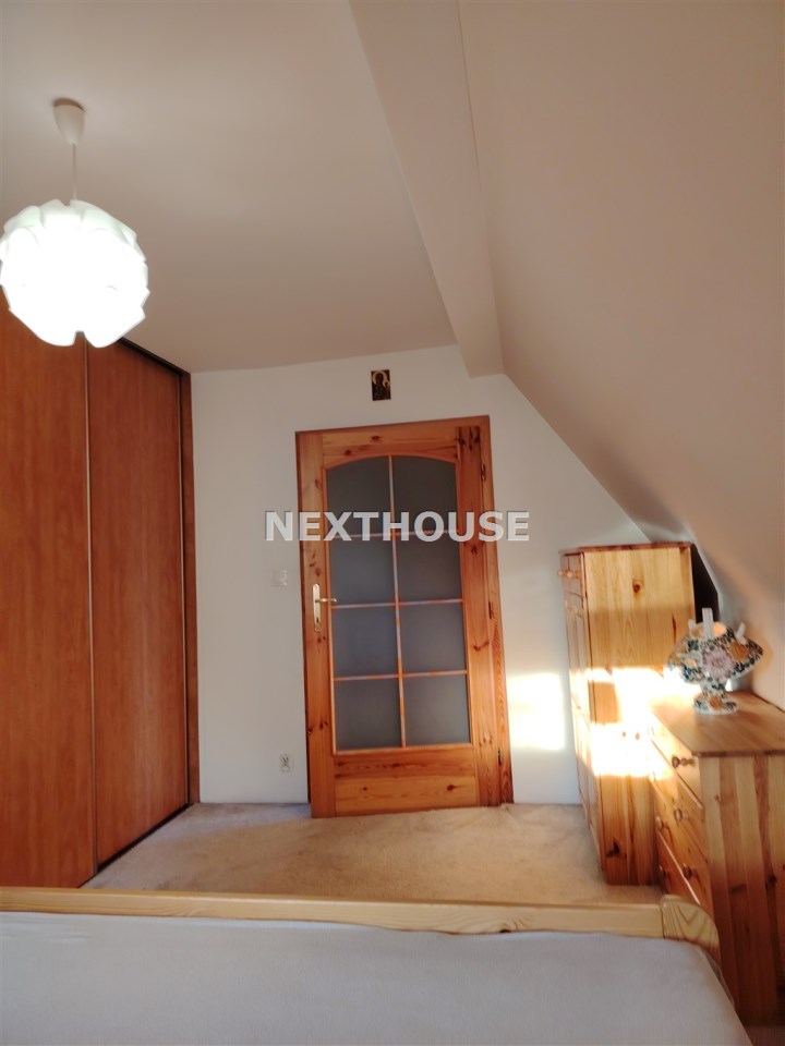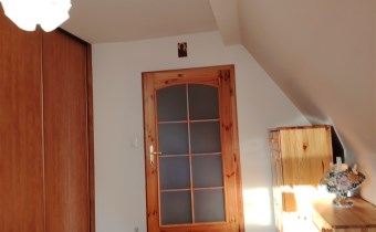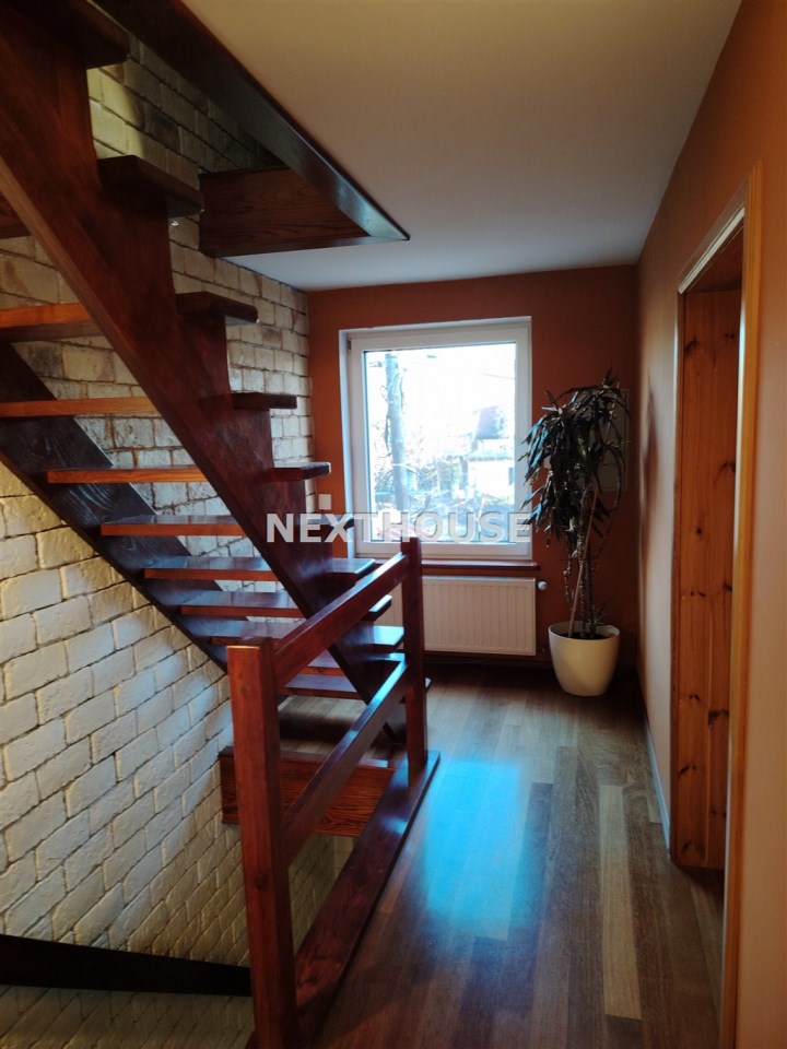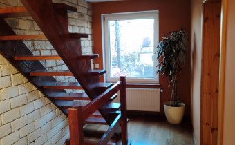Wnętrza wykończone z dbałością o detale: drewniana stolarka drzwiowa i schody, jesionowe deski na parterze, okna PCV (dwuszybowe).