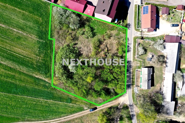 Działka o kształcie zbliżonym do kwadratu porośnięta „samosiejnymi” drzewkami i krzewami (bez konieczności zgłaszania wycinki).