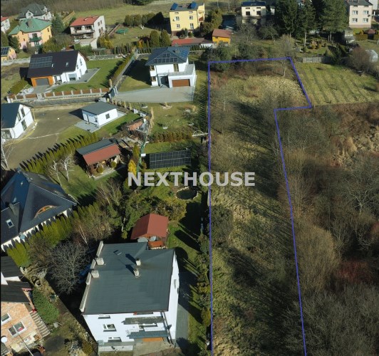 działkę budowlaną o powierzchni 1831m2 o nieregularnym kształcie. Wjazd na działkę o szerokości 14m, w dalszej części działka ma
