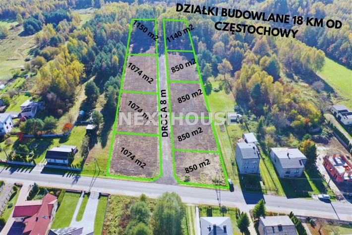 Na sprzedaż 9 działek budowlanych o powierzchni od 850 do 1150 m2 z lokalizacją w miejscowości STARCZA przy ul. Szkolnej ( zaledwie 20 minut od Częstochowy oraz 10 minut od autostrady A1).