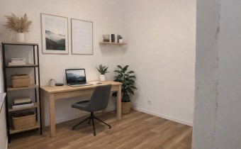 Planowany układ: salon z aneksem kuchennym, sypialnia, łazienka.