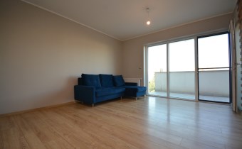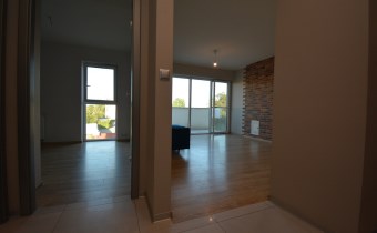 • jasny salon z aneksem kuchennym i wyjściem na balkon,