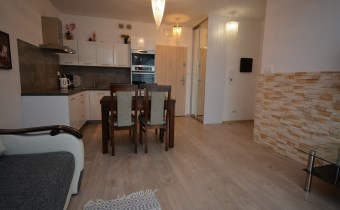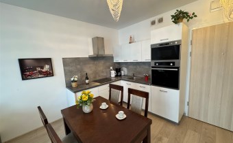 Oferujemy Państwu do sprzedaży komfortowy kompletnie umeblowany i wyposażony apartament dwupokojowy z balkonem/5,56 m2/,usytuowany na czwartym piętrze czteropiętrowego budynku z windą z 2018 r.w Kołobrzegu w dzielnicy Podczele.Ogrzewanie i ciepła woda miejskie.Lokal wyposażony w sprzęt AGD:płyta indukcyjna,lodówka,piekarnik,kuchenka mikrofalowa,pralka,telewizor,zastawa stołowa.Teren zamknięty,ogrodzony,monitorowany i chroniony,okolica cicha i spokojna z dala od zgiełku miasta w odległości zaledwie 400 m od morza.Apartament jest częścią zamkniętego i monitorowanego osiedla z własnym zapleczem sportowo-rekreacyjnym/bezpłatnym dla właścicieli/,czynnym każdego dnia w godzinach 7-21,w skład którego wchodzi kompleks basenów:zewnętrzny i kryty,wraz z sauną,jacuzzi,centrum fitness,bawialnią dla dzieci,a także placem zabaw dla dzieci,rowerownią oraz parkingiem z bezpłatnymi naziemnymi miejscami.W bliskiej odległości:sklepy,przychodnia lekarska,kościół,szkoła,wypożyczalnia rowerów,restauracje,bary,przystanek komunikacji miejskiej.Od dzielnicy uzdrowiskowej Kołobrzegu oddzielają nas urzekające rozlewiska Eko-parku Wschodniego Natura "2000"z unikalną fauną i florą,którędy przebiega jedna z najdłuższych,malowniczych ścieżek rowerowych w Europie.Niskie koszty eksploatacyjne opłaty miesięczne to kwota 288,18 zł.,opłaty za kompleks rekraacyjno-basenowy to kwota 437,20 zł.Cena do negocjacji.Zapraszamy na prezentację.
