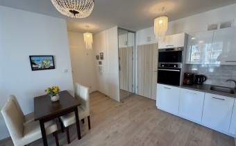 Oferujemy Państwu do sprzedaży komfortowy kompletnie umeblowany i wyposażony apartament dwupokojowy z dużą loggią/8,5 m2/,usytuowany na drugim piętrze czteropiętrowego budynku z windą z 2018 r.w Kołobrzegu w dzielnicy Podczele.Ogrzewanie i ciepła woda miejskie.Lokal wyposażony w sprzęt AGD:płyta indukcyjna,lodówka,piekarnik,kuchenka mikrofalowa,pralka,telewizor,zastawa stołowa.Teren zamknięty,ogrodzony,monitorowany i chroniony,okolica cicha i spokojna z dala od zgiełku miasta w odległości zaledwie 400 m od morza.Apartament jest częścią zamkniętego i monitorowanego osiedla z własnym zapleczem sportowo-rekreacyjnym/bezpłatnym dla właścicieli/,czynnym każdego dnia w godzinach 7-21,w skład którego wchodzi kompleks basenów:zewnętrzny i kryty,wraz z sauną,jacuzzi,centrum fitness,bawialnią dla dzieci,a także placem zabaw dla dzieci,rowerownią oraz parkingiem z bezpłatnymi naziemnymi miejscami.W bliskiej odległości:sklepy,przychodnia lekarska,kościół,szkoła,wypożyczalnia rowerów,restauracje,bary,przystanek komunikacji miejskiej.Od dzielnicy uzdrowiskowej Kołobrzegu oddzielają nas urzekające rozlewiska Eko-parku Wschodniego Natura "2000"z unikalną fauną i florą,którędy przebiega jedna z najdłuższych,malowniczych ścieżek rowerowych w Europie.Niskie koszty eksploatacyjne opłaty miesięczne to kwota ok 350 zł.,opłaty za kompleks rekraacyjno-basenowy to kwota ok 450,00 zł.Cena do negocjacji.W cenie zakupu garaż 16,8 m2 pod budynkiem.Zapraszamy na prezentację.