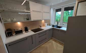 Lokal znajduje się na pierwszym piętrze solidnego bloku z cegły. Mieszkanie w pełni umeblowane, wyposażone w nowoczesny sprzęt AGD (telewizor, piekarnik, zmywarka, pralka). Ogrzewanie miejskie, ciepła woda zapewniana przez nowoczesny kocioł gazowy.