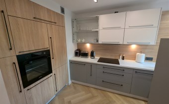 Lokal znajduje się na pierwszym piętrze solidnego bloku z cegły. Mieszkanie w pełni umeblowane, wyposażone w nowoczesny sprzęt AGD (telewizor, piekarnik, zmywarka, pralka). Ogrzewanie miejskie, ciepła woda zapewniana przez nowoczesny kocioł gazowy.